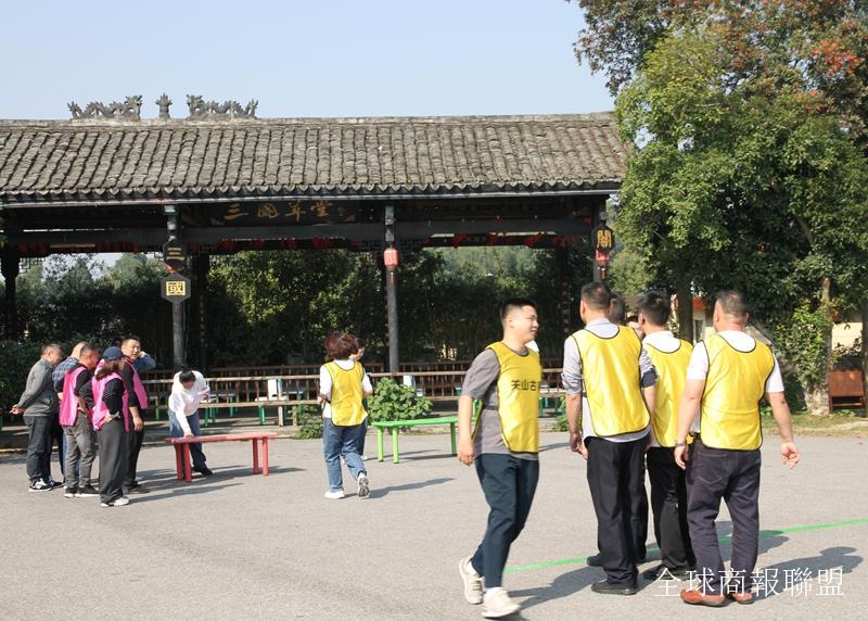 關山古鎮景區的「三國草堂」前,一家公司的十多名員工分成兩隊,正在進行一場與三國文化相關的團隊競賽。隊員們通力協作,以遊戲方式排兵佈陣,既增進了友誼、又增強了團隊協作能力。