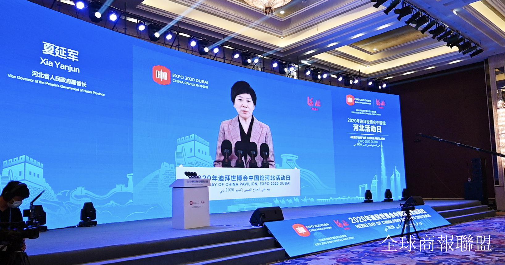 河北省副省長夏延軍在致辭中表示,河北地理區位優越、產業基礎雄厚、自然資源豐富、市場空間廣闊,是京津冀世界級城市群的重要組成部分,在全國發展大局中佔有重要地位。河北與阿聯酋建立了長期友好合作關係,雙方在農業、電力、建材、製造業等領域交流合作日益密切,成果十分豐碩。本次迪拜世博會河北活動日將圍繞中國館「構建人類命運共同體—創新和機遇」主題,突出優勢產能合作、對外貿易拓展、文旅展示推介三個重點,精心組織系列務實高效的經貿活動,全方位、多維度展示河北發展新優勢、新機遇、新成果。她表示,希望以此次迪拜世博會為新起點,與「一帶一路」沿線特別是包括阿聯酋在內中東國家和地區,進一步分享河北機遇、深化務實合作、共創美好未來。