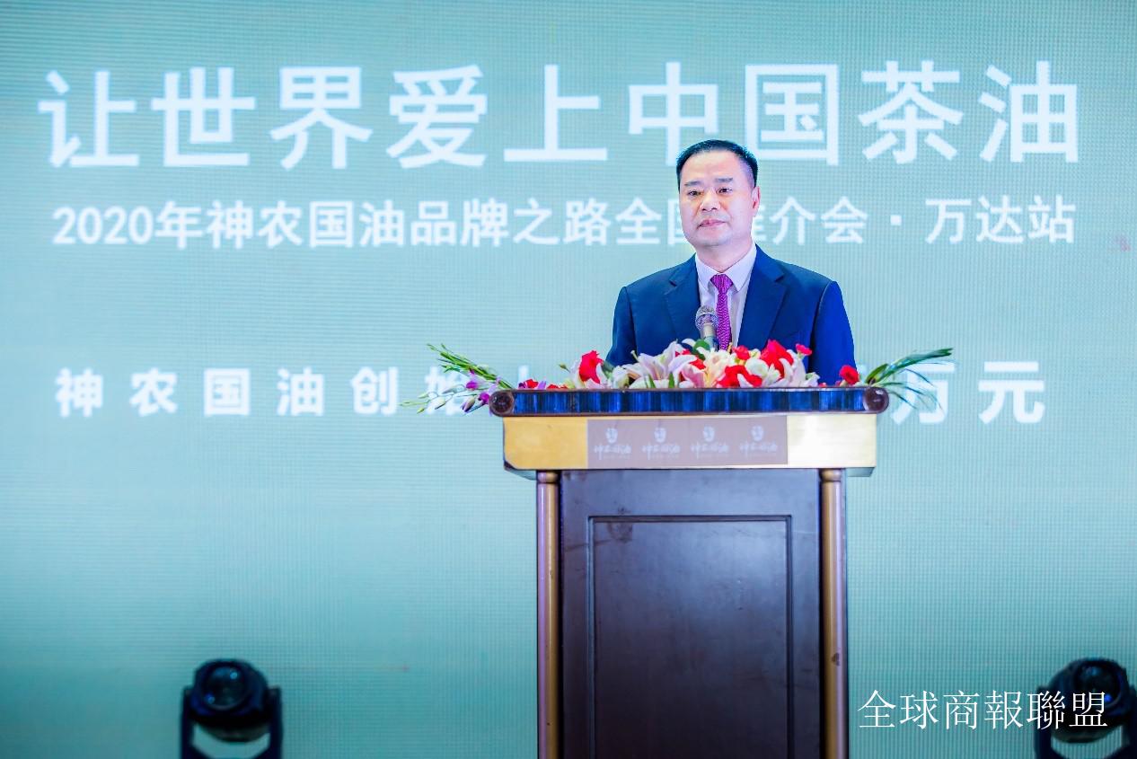神農國油創始人李萬元在品牌推介會上介紹公司