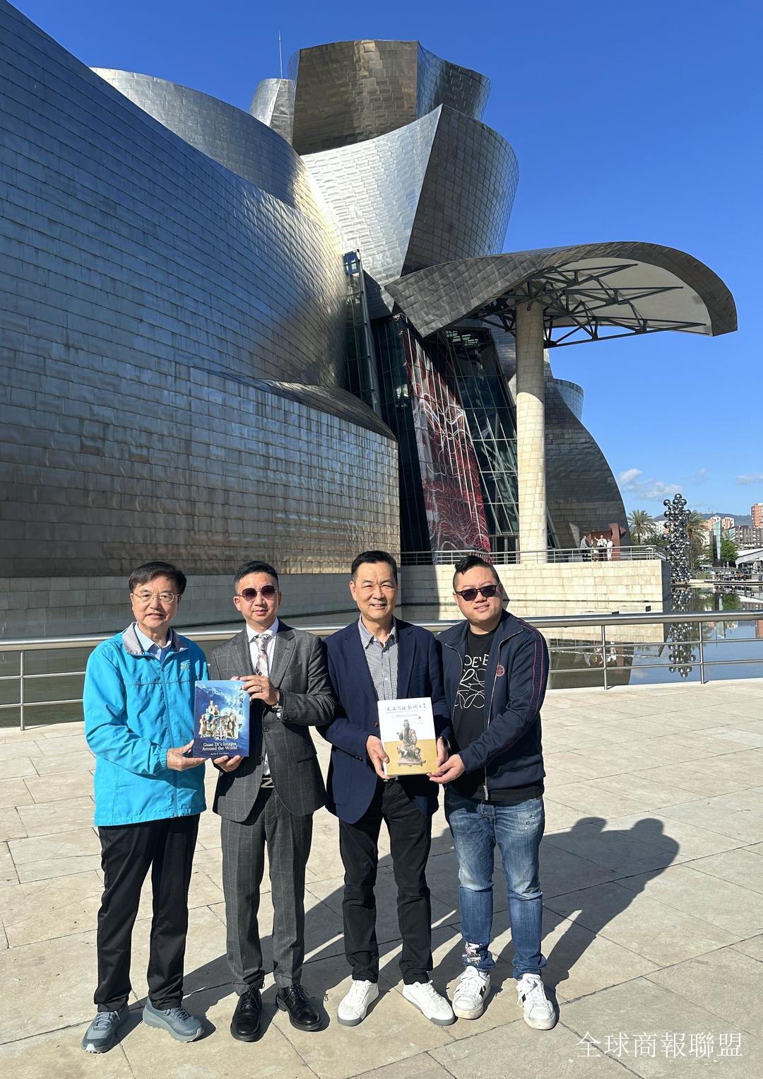 神女號郵輪停靠西班牙畢爾巴鄂,西班牙巴斯克華人華僑總會會長陳立新早已驅車在港口等候。他駕著愛車,接到朱正明先生,用低音特美的車載播放上世紀八十年代中國懷舊音樂,一起來到古根海姆美術館。西班牙巴斯克華人華僑總會常務副會長宋伶勇、秘書長朱永新早已在美術館前等候。