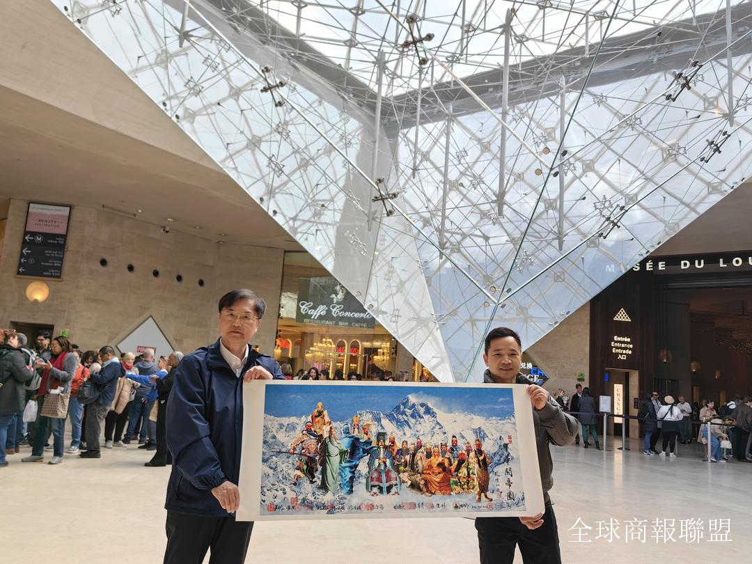 在盧浮宮,朱正明向歐洲商會贈送《中華關帝圖》