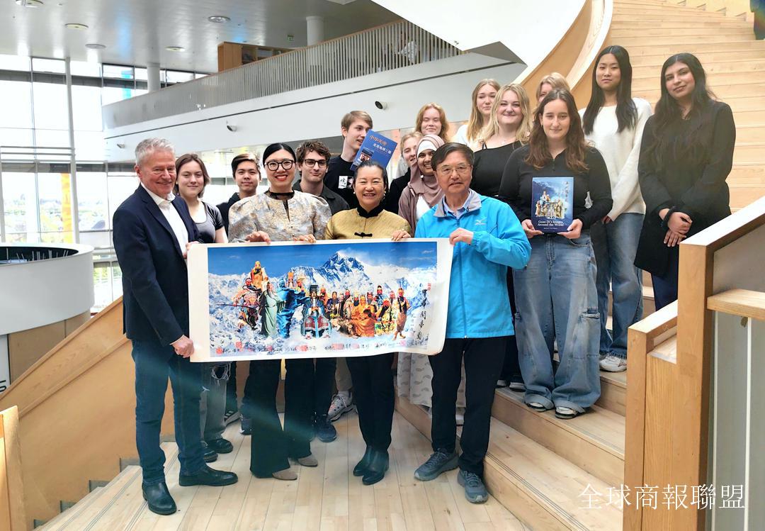 朱正明向丹麥宋慶齡基金會主席劉曉明女士(前排右二)贈送《中華關帝圖》