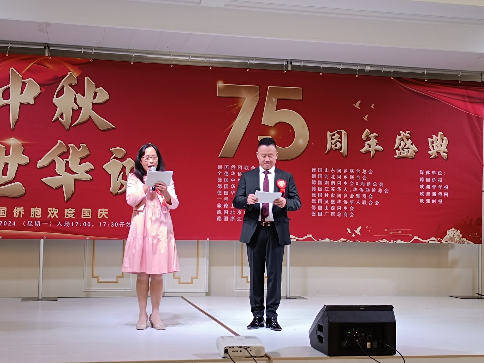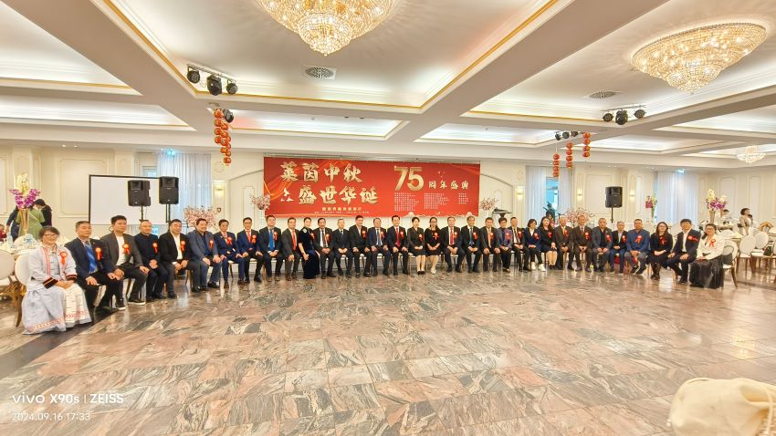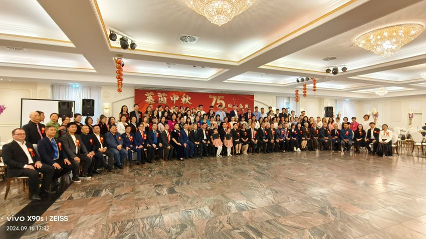 「五洲共賞月,四海皆團圓。」 2024年9月16日晚,德國北威州Hürth 城市的一個名為Evant Palast 宮殿大廳 里,十六個德國華人僑團齊聚一堂,首次攜手共同舉辦「萊茵中秋」「盛世華誕」的盛大文化活動,共同慶祝中秋佳節與中華人民共和國成立75周年國慶。