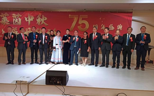 首先是全德華人社團聯合會吳偉澤主席率領十六位僑團會長登台致辭。吳主席在致辭中表示:近百年來,德國數十萬華僑華人在異國他鄉辛勤耕耘,不僅安居樂業,更將中華民族的傳統文化傳播四方。他們熱愛家鄉,積極促進中德兩國各方面的交流與合作,為兩國的友誼與發展貢獻着自己的力量。今日,十六個僑團首次聯合舉辦慶中秋迎國慶盛會,這是團結的象徵,是共同發展的見證,更是對文化傳承與國家繁榮的深切情感表達。在這象徵團圓的中秋佳節,僑胞們共同祝願祖(籍)國繁榮昌盛,誓言繼續攜手前行,開創更加美好的未來。