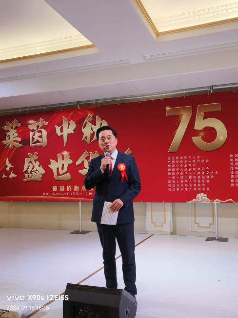 杜春國總領事在致辭時向僑胞們致以誠摯的節日祝福,他對策劃活動的十六個僑團的付出表達衷心感謝。他表示,每逢佳節倍思親,海內外中華兒女的心緊密相連。新時代新征程,中國人民在中國共產黨領導下全面推進中國式現代化,為實現強國建設、民族復興的宏偉目標砥礪奮進。希望廣大僑胞們繼續發揚愛國愛鄉傳統,為促進中德關係發展、推動構建人類命運共同體發揮更大作用。